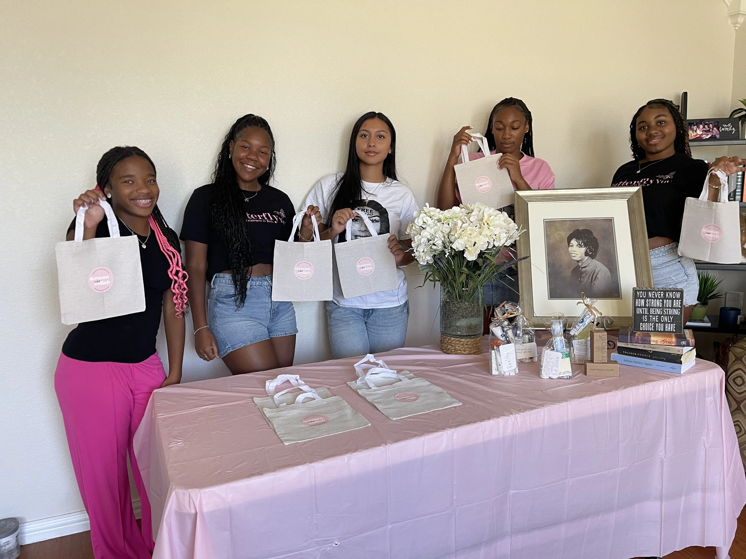 Over 250 Self Care Bags created. Butterflyyou girls ironed on all WomenWhoCollab Logos and provided Spa Day accessores for the Breast Cancer Survivors. #FruitsofOurLabor